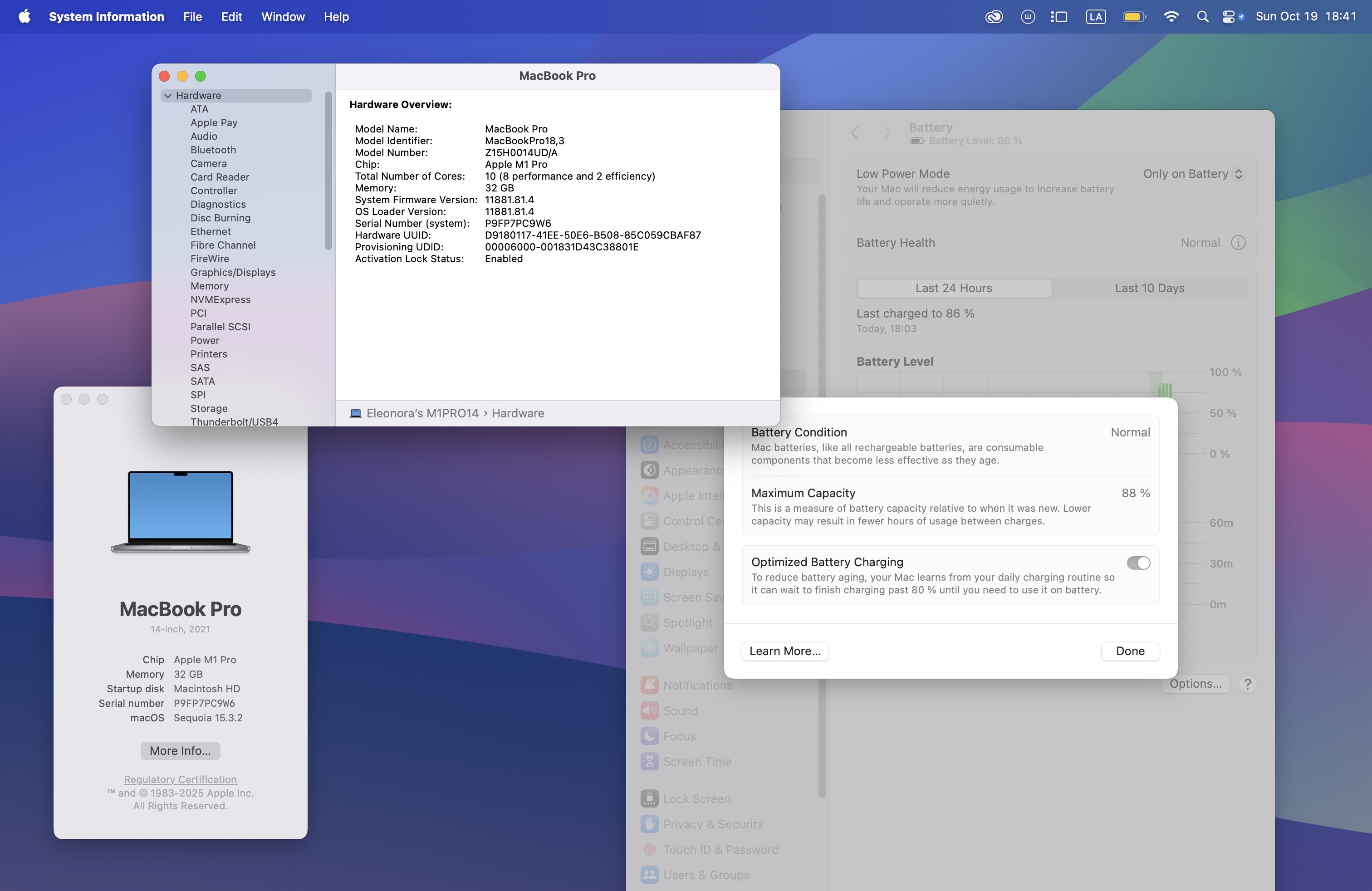Se trata del M1 Pro de mayores prestaciones de procesador en el lanzamiento (10 Core CPU / 16 Core GPU / 16 Core Neural Engine), ampliado a 32Gb RAM y 1 TB SSD. Se encuentra en impecable estado, muy pocas veces ha salido de casa.